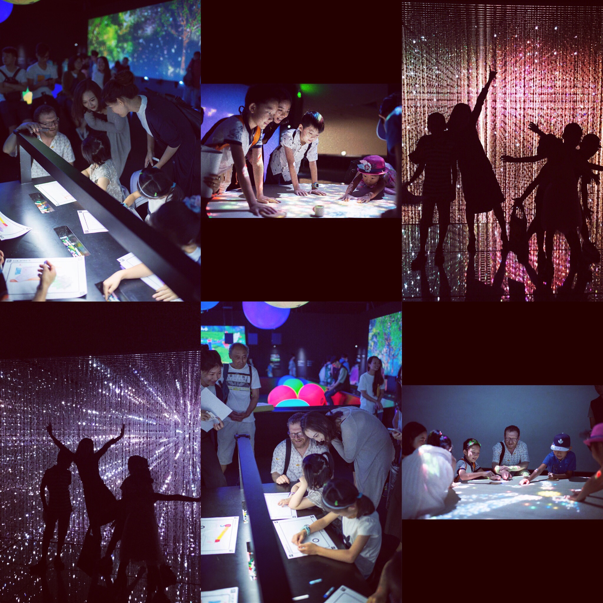 One area of key research was the identification and use of primary research sources, in the form of integrating gallery and site visits into the programme of study.  This led to taking 30 students to the the Team Lab Exhibition and Research Project, in Shenzhen.  The exhibition led by a group of artists from Japan focused on the application of digital, interactive light based installation  and technology.  The drawings produced were then used to instigate a class in the teaching studio, where students expanded on their experiences and drawings through collage, drawing and painting.