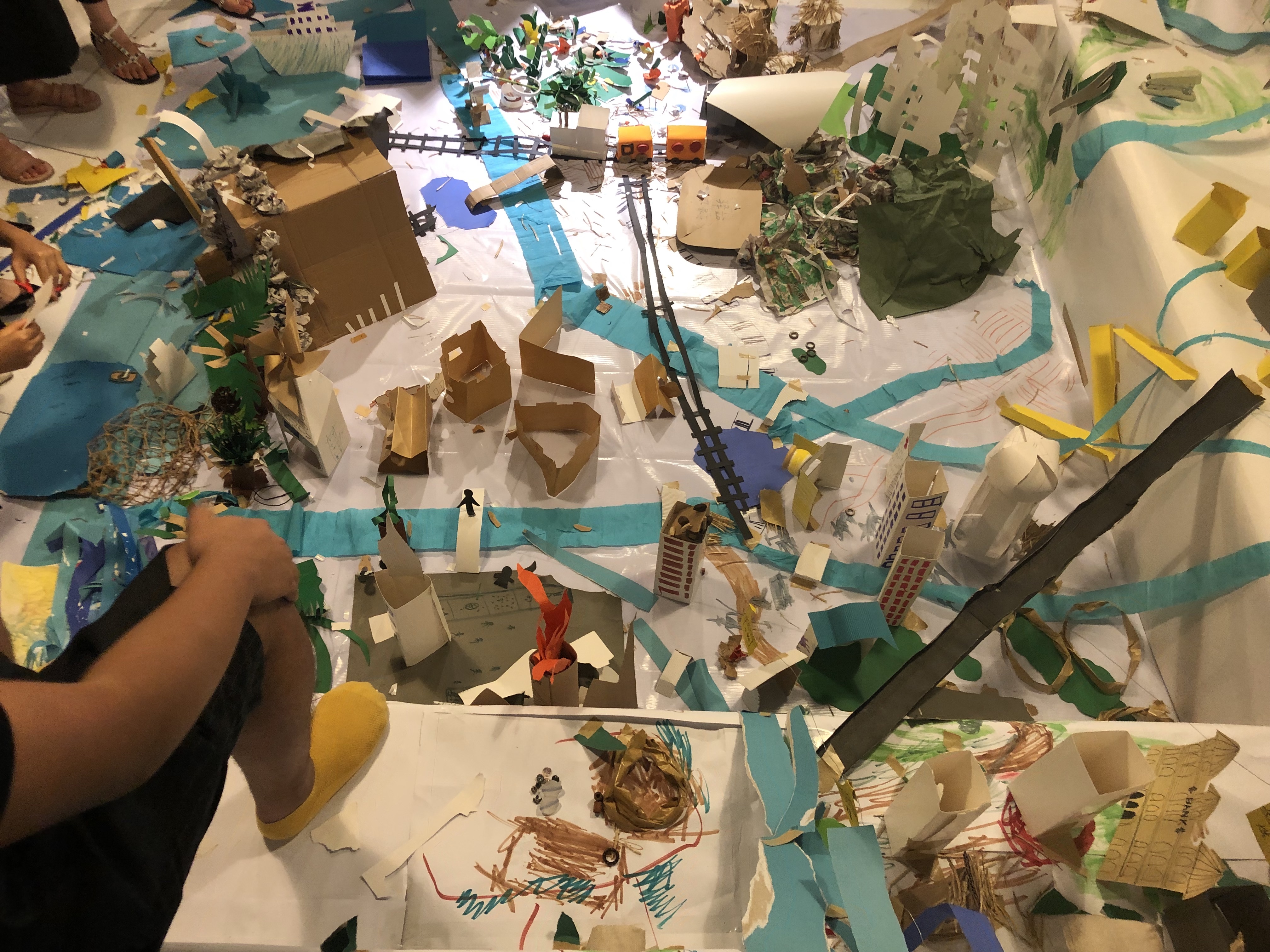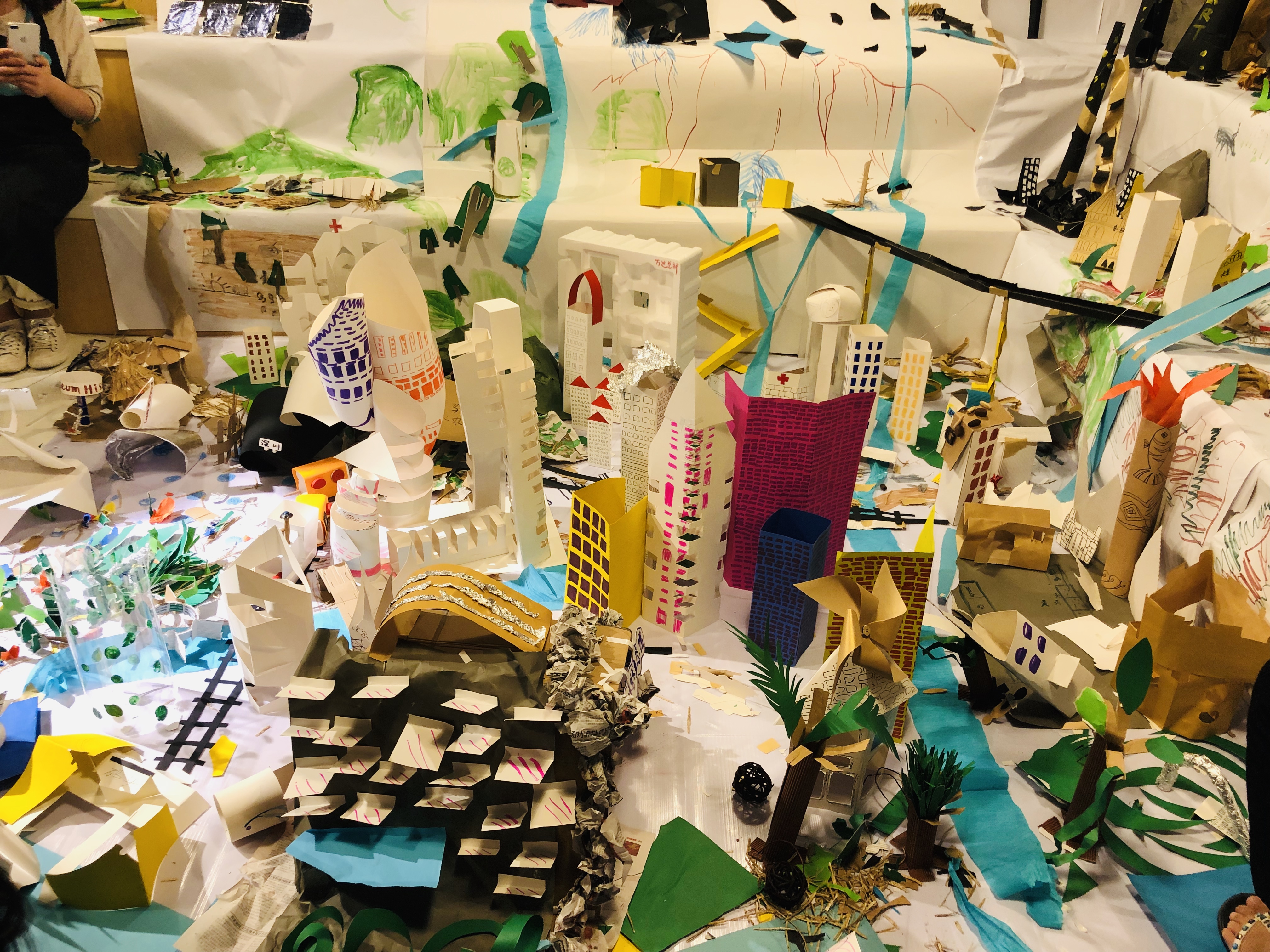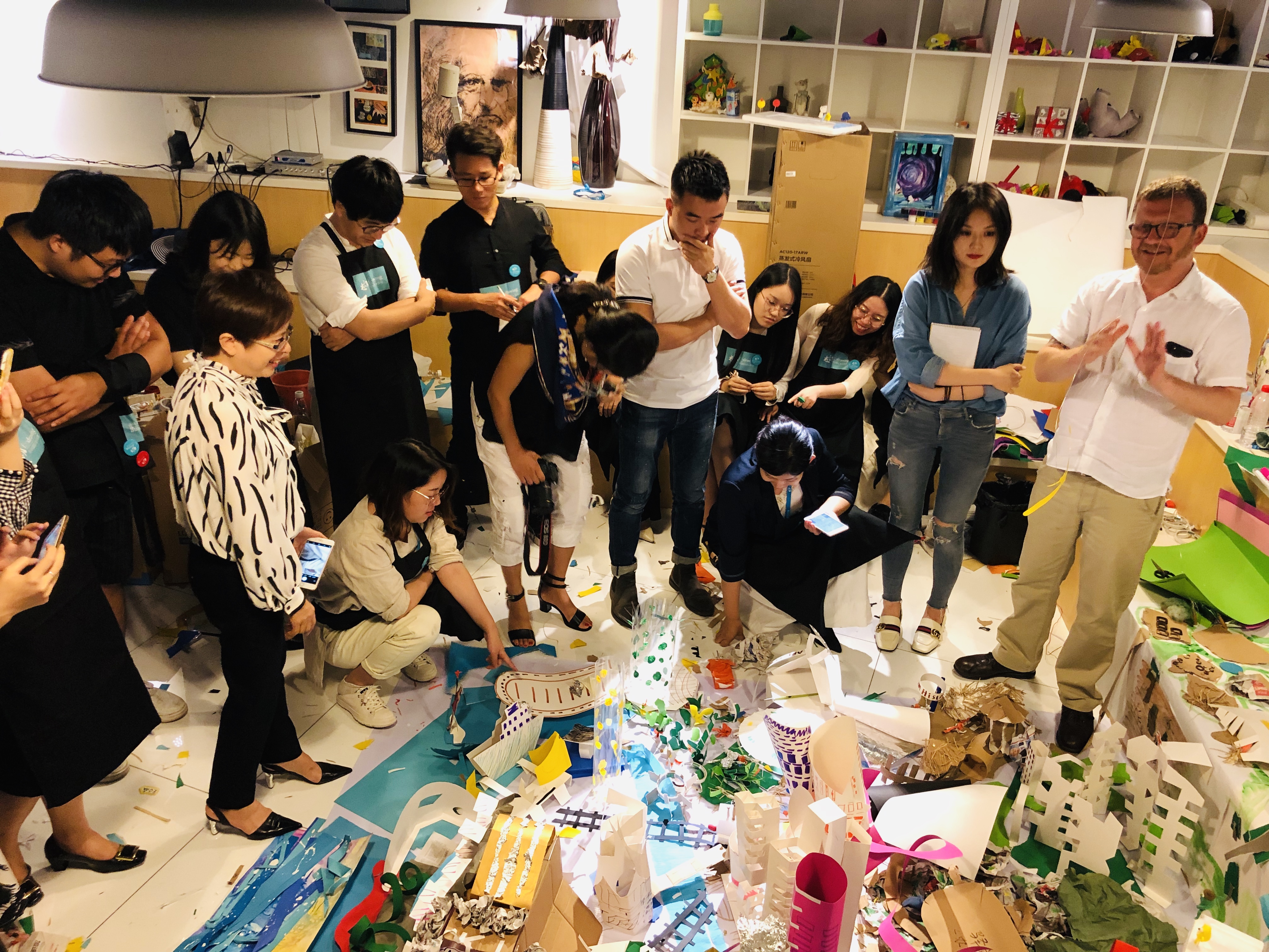 I used the first two years of development and identification of the core, curriculum and teaching and learning components within the FunDrawing creative curriculum to develop and inform A City in Seven Days, a project in collaboration with FutureLab, at West Bund, Shanghai, in November 2019. ( web link?). The groundwork for A City in Seven Days developed from a one-day project model as part of the curriculum development with FunDrawing. A notional city was formed from an approach of an hours creative activity and expanded to a day, each day being a different century or point in history. This action-based project was essential for mapping out both the delivery and rationale for the FutureLab project and engaging the team fully in the development. I invited the FunDrawing team to be part of the development of the seven-day project with staff co-leading on each of the days. Each day’s teaching session of A City in a Seven Days at FutureLab was co-developed and facilitated by myself and two members from the FunDrawing, drawn from different centres across China. I asked them to draw directly from locational and cultural references based on their cities, juxtaposed with a lexicon of specific vernacular western references. The crosscultural nature of each day allowed discussions around learning approaches with such a unique audience of international educators.