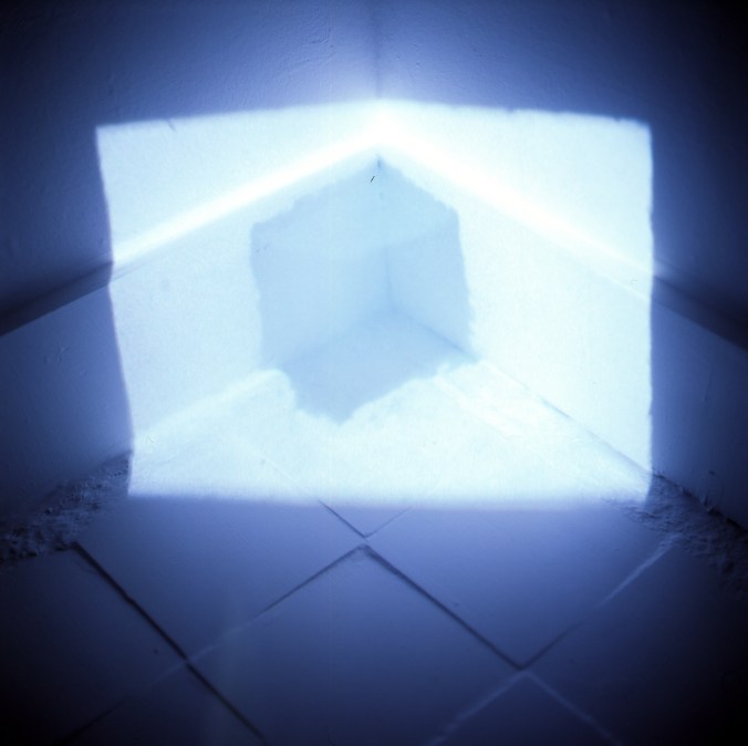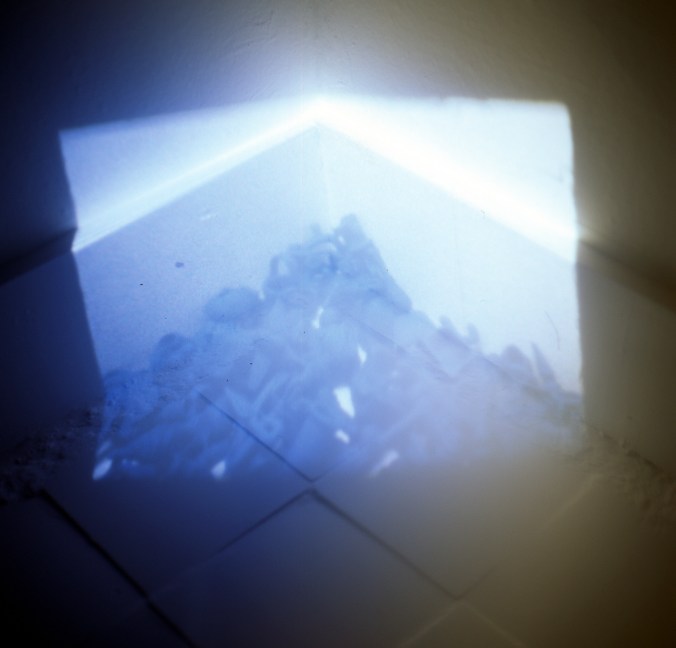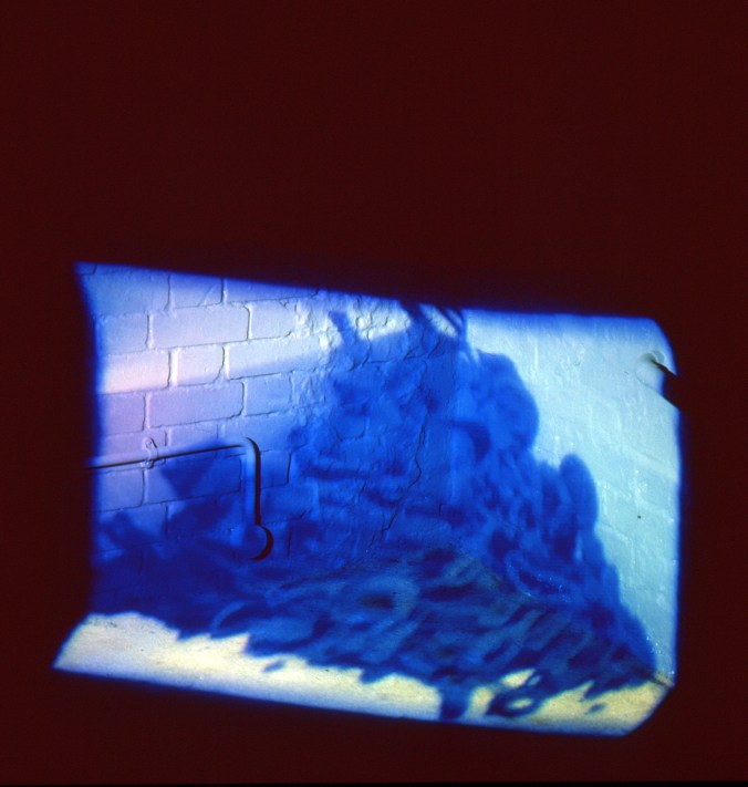 ‘After’ utilises Super 8 film of stop-frame plasticine animation made within generic spaces. It is then re-projected into the original space as a film loop which re-registers with the spaces producing a rudimentary hologram.