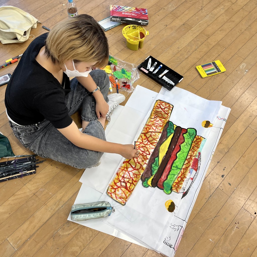 My RCA colleague Dr Kyung Hwa Shon and I worked with the Nakata Museum’s educational team to deliver a drawing workshop for local school children ages 8-10. We first reintroduced our own work and practice as the schoolchildren visited Nakata’s group exhibition Painters and Collection 2021, which included work by Dr Kyung Hwa Shon and myself.
