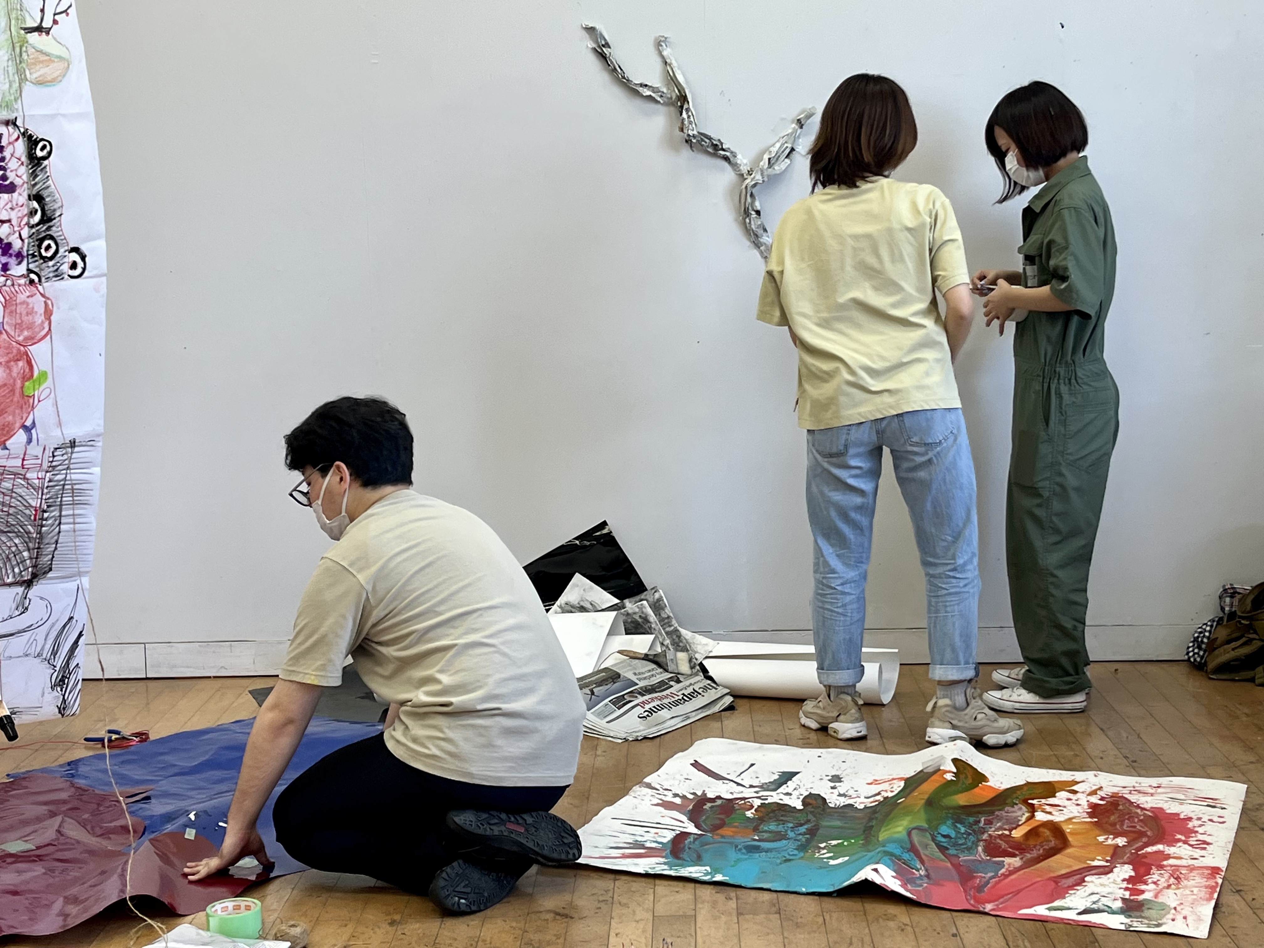 In week three of the residency, Dr Kyung Hwa Shon and I delivered a two-day action research-based workshop. We focused on and identified approaches to collaborative working, expanded painting and installation, which would help students interrogate the nature of the collective and community inherent in Re-& De-.