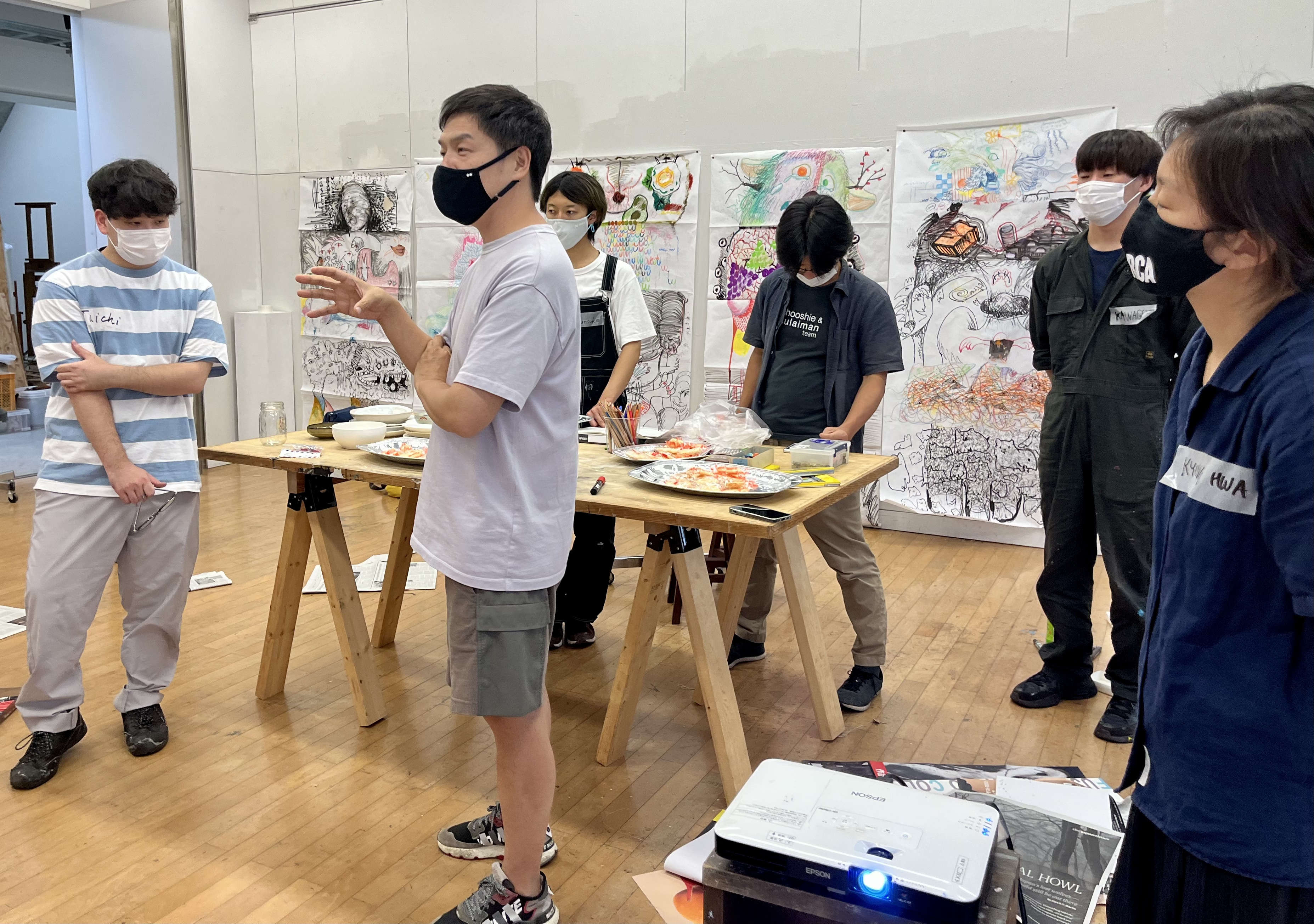 My RCA colleague Dr Kyung Hwa Shon and I worked with the Nakata Museum’s educational team to deliver a drawing workshop for local school children ages 8-10. We first reintroduced our own work and practice as the schoolchildren visited Nakata’s group exhibition Painters and Collection 2021, which included work by Dr Kyung Hwa Shon and myself.