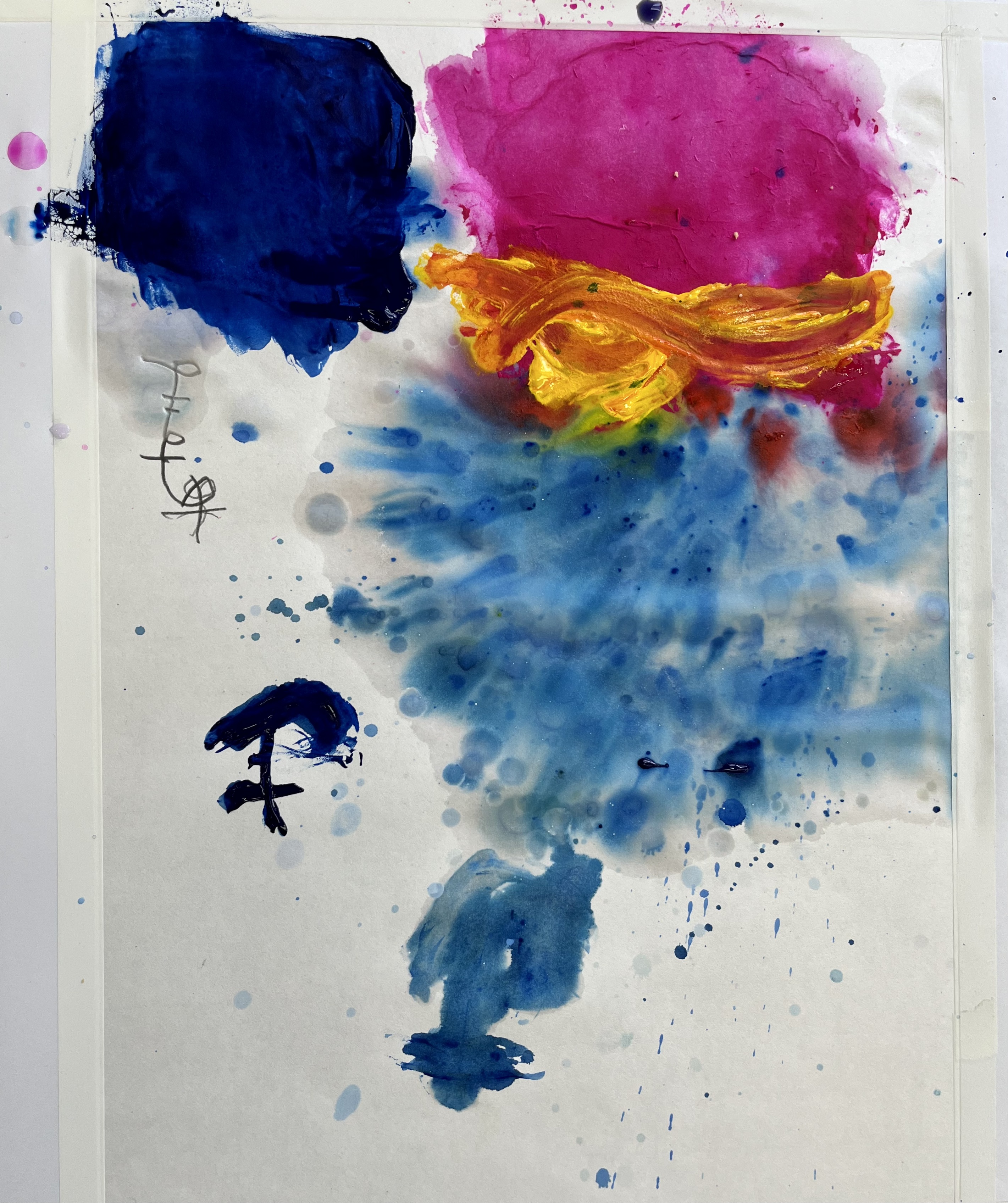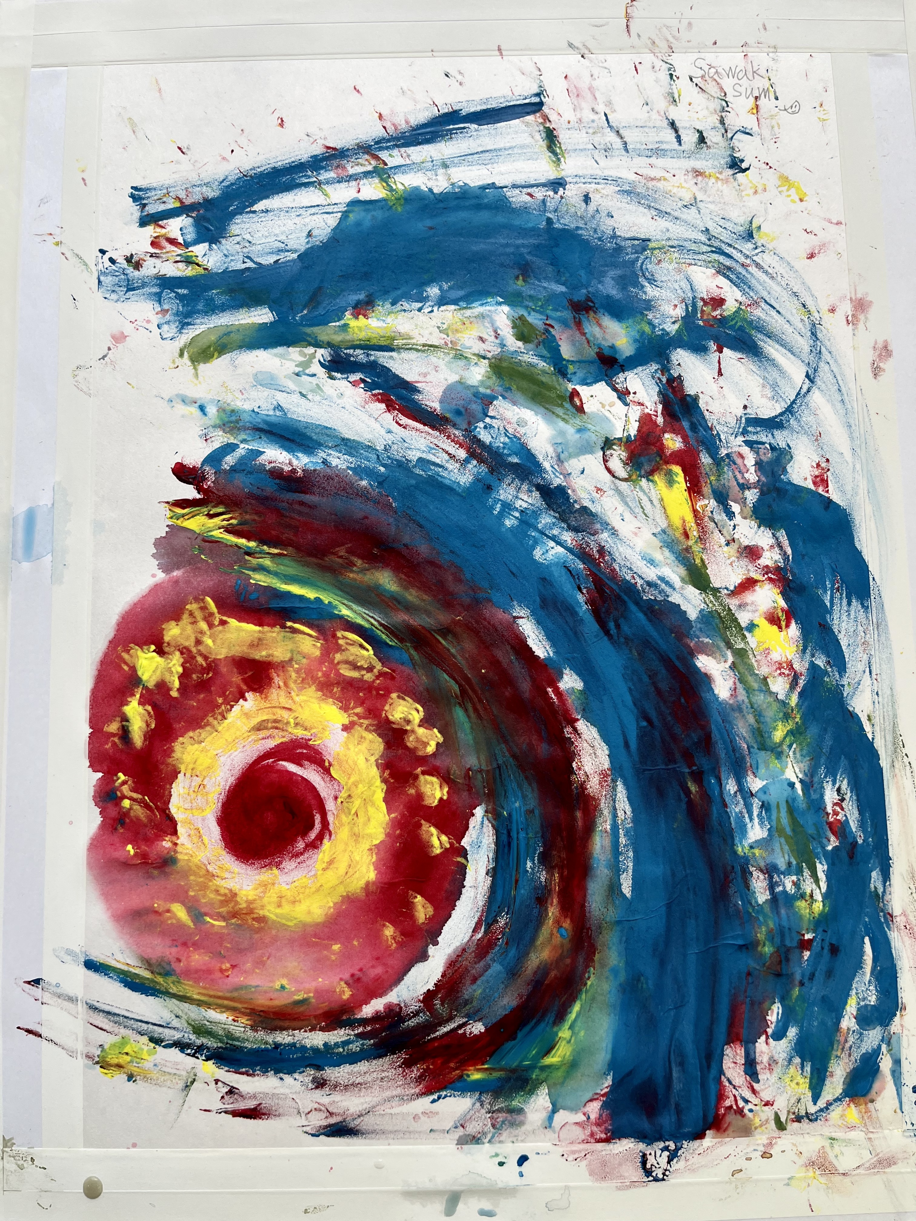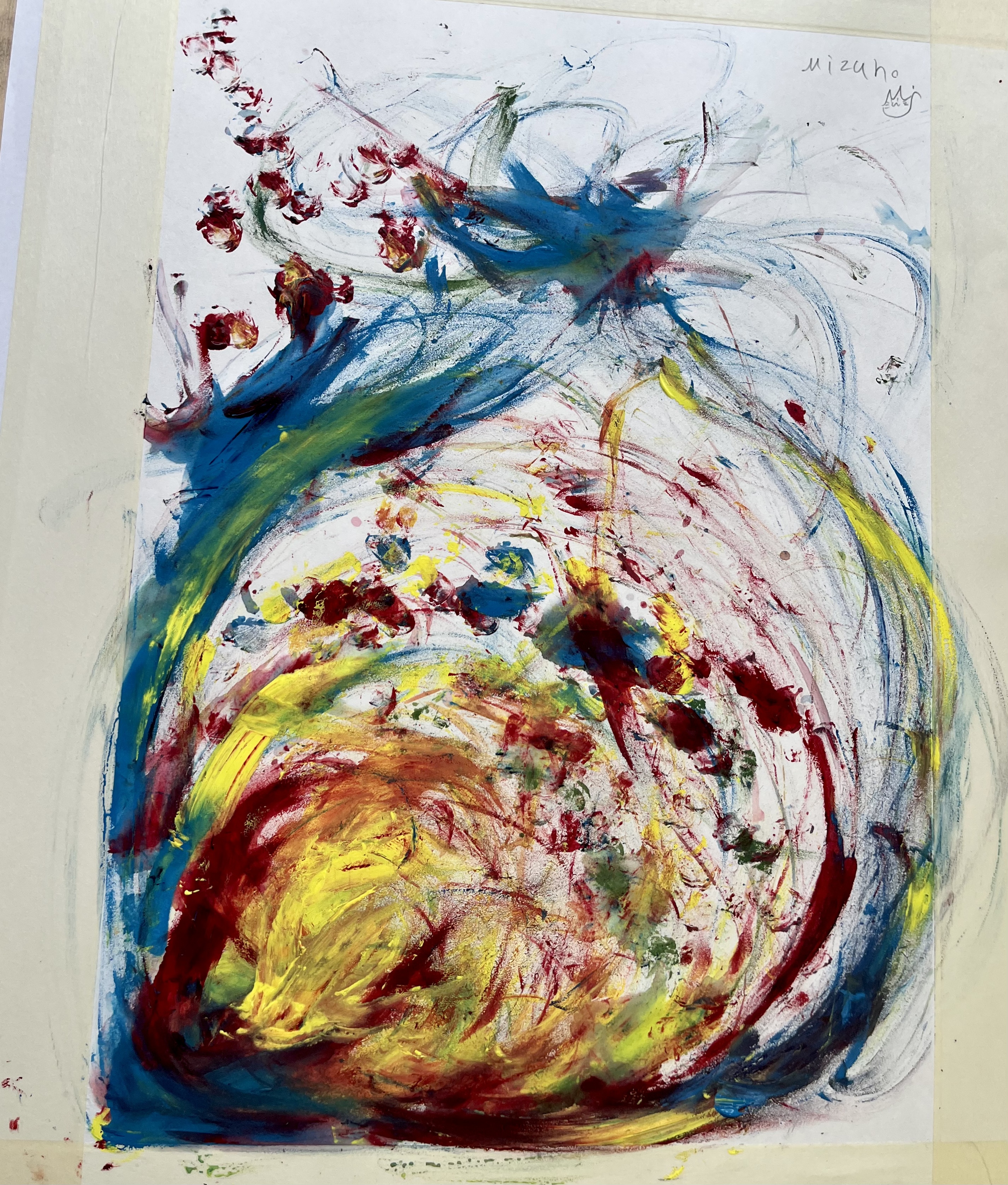 The premise of the workshop was based on notions of drawing from non-visual starting points, speaking to and introducing paradigms such as synaesthesia and historical presidents, including the work of Vladamir Kandinsky. Students used traditional Japanese paper and inks and responded to taste and texture-based sensations and experiential engagement with traditional Japanese sweets. It was exciting to see how the children fully embraced the concept, producing extraordinary and beautiful outcomes. In the second stage, they responded to UK shortbread biscuits as a form of cultural exchange and juxtaposition of textures and tastes. The workshop’s key teaching and learning focus was that the session was delivered without a professional translator, which added to the phenomenological approach. Before the event, we prepared over thirty cards of keywords in Japanese, English and Korean; these were held up at points individually or in combination. The reliance and dependence on demonstration, actions and intonation enhanced the concepts and quickly broke down language barriers.