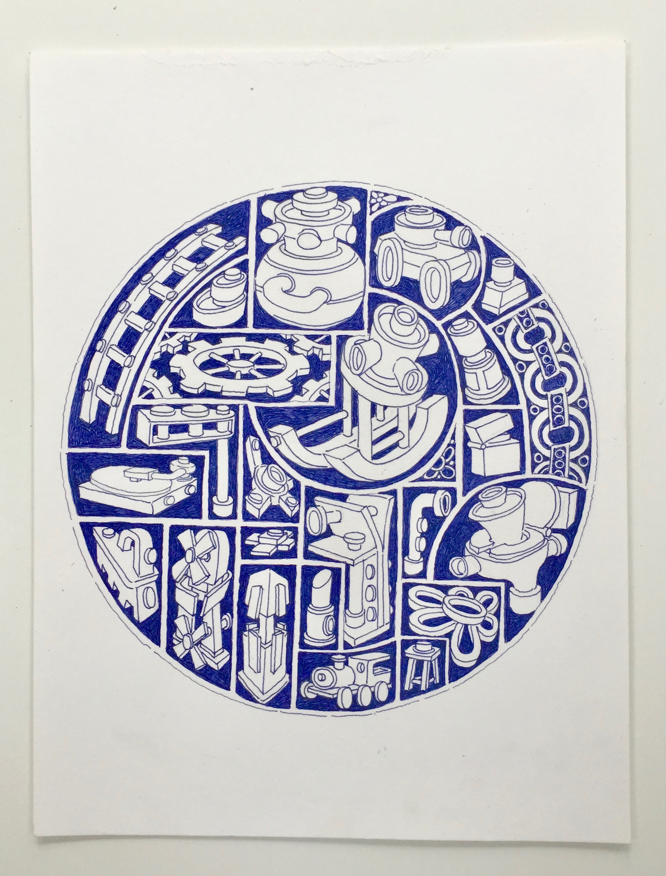 Shaped `narative: Ink on Paper 2017. Gary Clough