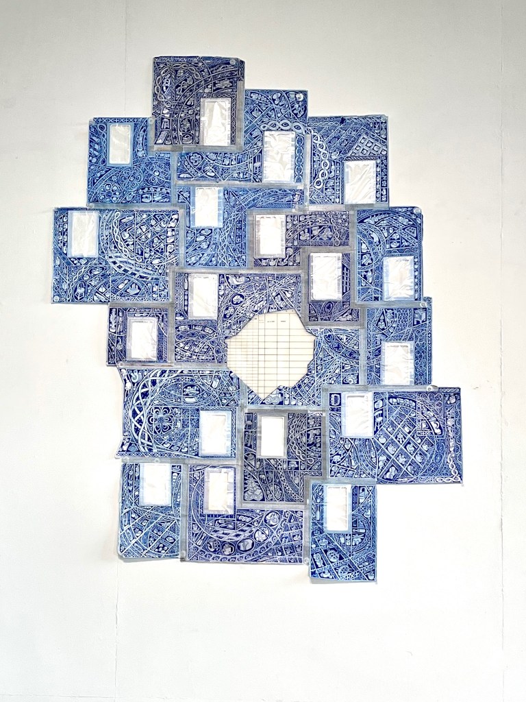I am pleased to be invited to be part of this exciting project opening as part of the Singapore Art Week 06-15 January 2023 and joining colleagues and collaborators for the open seminar and launch at the National Institute of Education on the 12th of January. I will exhibit three pieces of work alongside fourteen international artists, academics and researchers – Identification l-lX, embroidery on canvas and Ono-Moiré and Moiré-Iè, ink on reused envelopes produced as part of a residency in Onomichi, Japan.