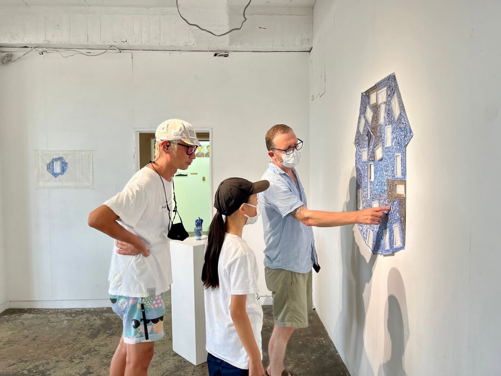 Ichi-Ni-San-Shi-Dōzo was the exhibition of the Re- & De- residency and the work produced by Dr Kyung Hwa Shon and Gary Clough exhibited at the Air Café Gallery, followed by tours and talks by the artists. The title Ichi-Ni-San-Shi Dōzo came from a phrase we both used with our limited Japanese when working with diverse groups of learners to begin or instigate action in taught workshops. Kyung Hwa and I also felt strongly it spoke to the dangers and inherent irony of the artist-in-residence as a momentary or fleeting construct. We want to ensure the residency is not to be viewed as a conclusion or end but to focus on its prime role in building and nurturing legacy and the long-term impact and remit of the broader project RE- & DE-.